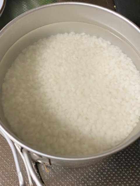 もち米2合を鍋に入れて水につけときます。