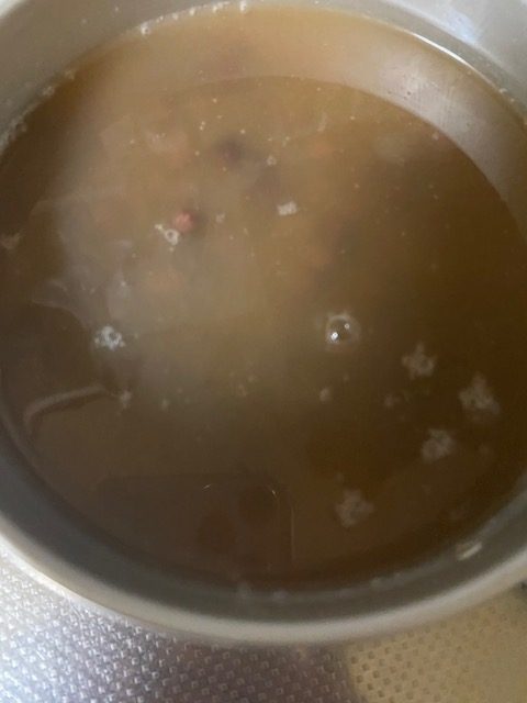 豆、硬めが好きなんで、適当に煮えて色が出たらいいか。