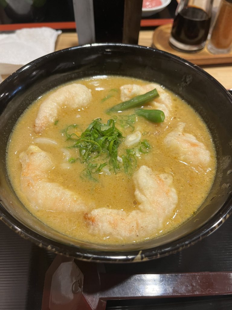 海老天カレーうどんです。