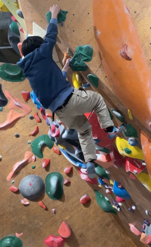 ボルダリング時間も残り10分程度となったところで、たつたつさんがものすごい登りを私たちにせてくれました。