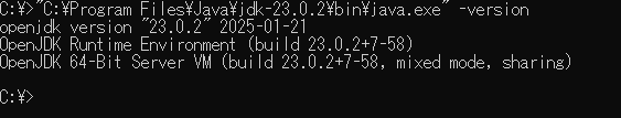 試しにコマンドプロンプトで「”C:\Program Files\Java\jdk-23.0.2\bin\java.exe” -version」を実行してみてください。「java -version」と同じ結果が得られるはずです。当然です。同じことをしているので(倒置法)