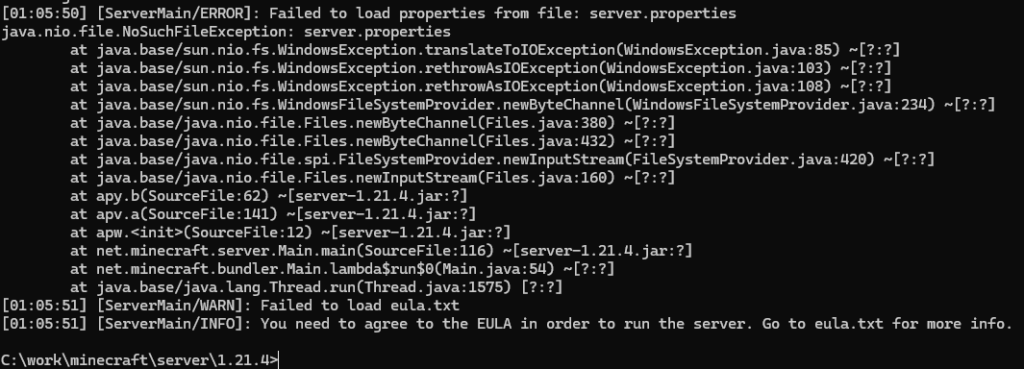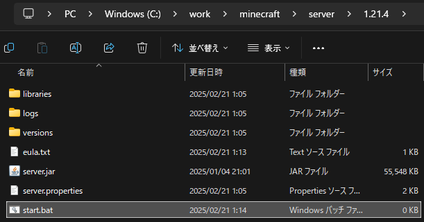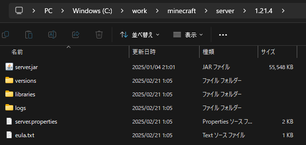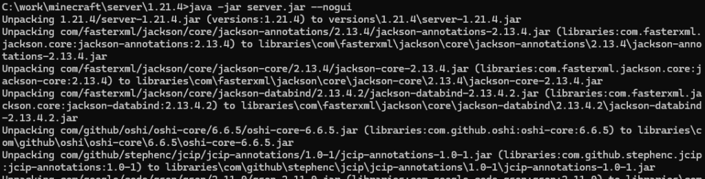 「cd C:\work\minecraft\server\1.21.4」と入力し、実行してください。