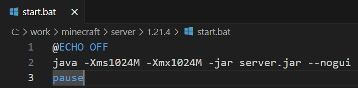 -Xmsと-Xmxは割り当てるメモリサイズです。10人程度ならこの設定(1GB)で問題ないかと思います。カクつき等が気になったらチューニングしてください。