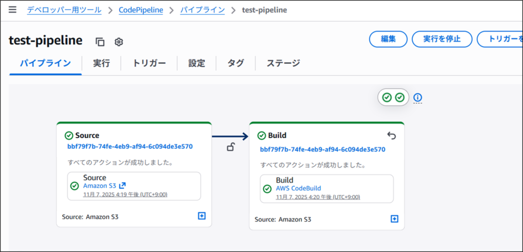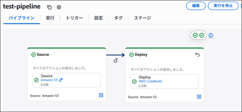 これらの作業を行い・・・・CICDパイプラインが完成しました!