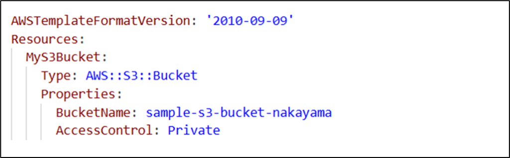 テンプレートの中身はこんな感じ。(s3-template.yml)
