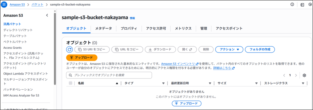 テンプレートで設定したS3バケットも作られていることが確認出来ました。